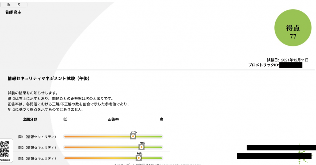 って、いつの話やねん!というのは置いときまして、昨年(2021年)の12月に受験した情報セキュリティマネジメント試験に合格しました。昨年7月に受験の際に午後試験の会場を間違えて受験できずに受験料を無駄にしてしまったリベンジは果たせました。