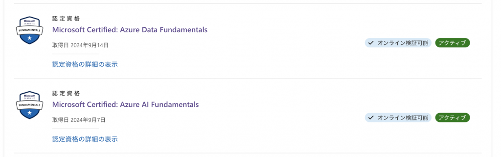 応用情報技術者(37)、Microsoft Certified: Azure AI Fundamentals(38)、Microsoft Certified: Azure Data Fundamentals(39個目)合格しました。